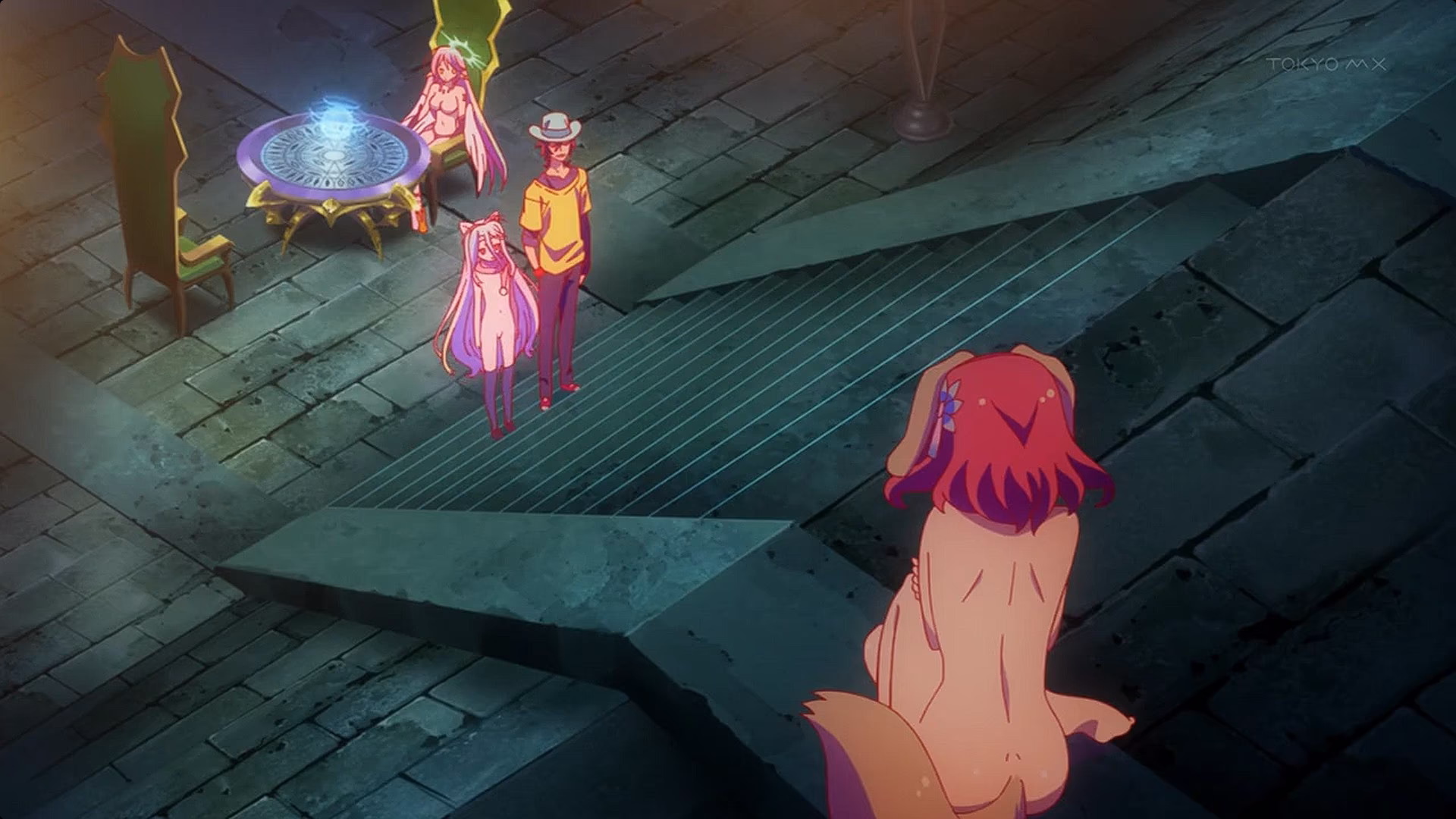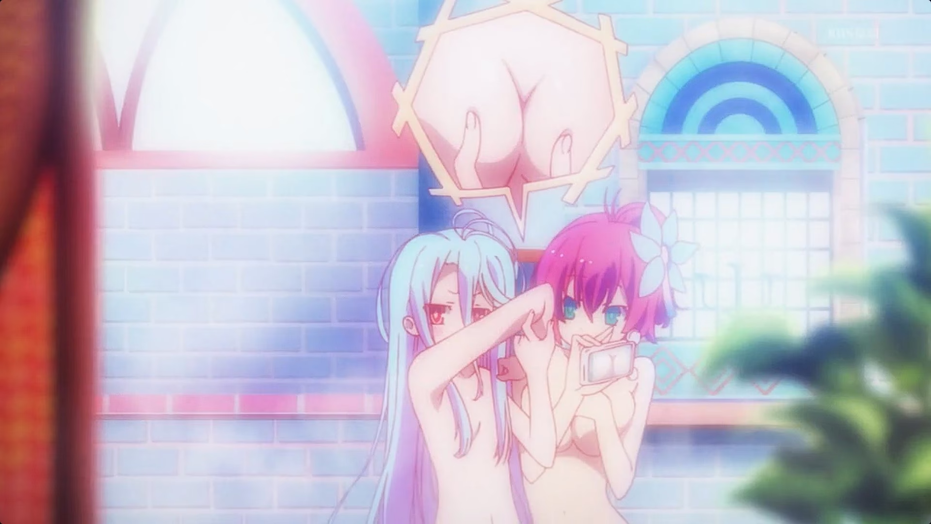 О том, что главные герои, Широ и Сора - имба, нам презентуют ещё на самом старте, где брат с сестрой играют в компьютерную игру, каждый сразу за двух игроков. Эти двое выносят любых задротов безо всякого труда и маются со скуки, требуя соответствующего их навыкам челленджа. Широ – прирождённая математик и логик, считающая любые уравнения со скоростью компьютера, а Сора – психолог и манипулятор экстра-класса, читающий людей вокруг, как книги (ага, но при этом ещё и социофоб). Не спрашивайте, откуда в них столько силы - просто примите это. За их невероятные навыки с ними связывается бог из выше описанного фэнтезийного мира и призывает в свой исекай, чтобы они навели бурю в стакане, а то богам что-то скучно стало.